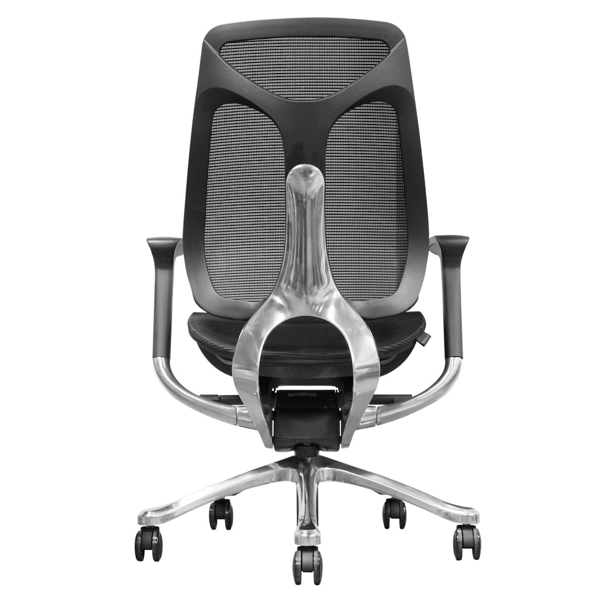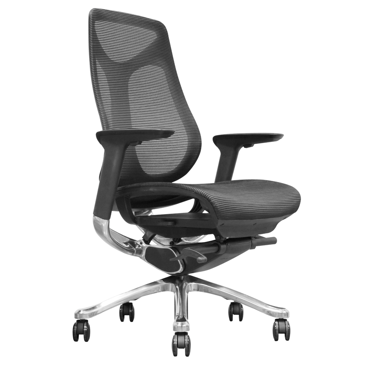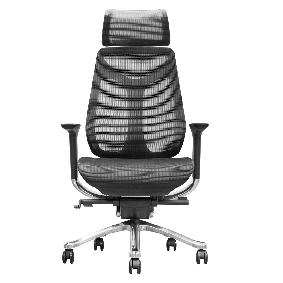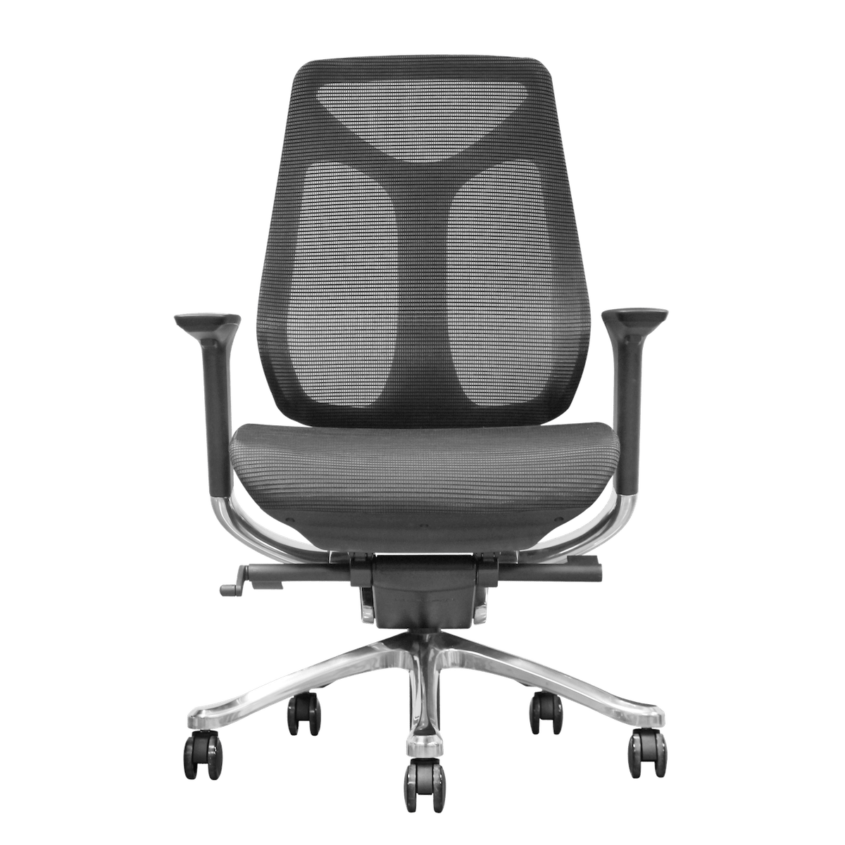 เก้าอี้พนักพิงสูง ที่นั่งผ้าตาข่ายสีดำ พนักพิงผ้าตาข่ายสีดำ เบาะนั่งสามารถเลื่อนเข้า-ออก ได้ตามสรีระของผู้นั่ง ด้านหลังเก้าอี้ระหว่างที่นั่งและพนักพิงผลิตจากอลูมิเนียมอัลลอยด์ เพื่อเพิ่มความแข็งแรงคงทน แขนปรับระดับได้ นั่งสบายด้วยเบาะที่หนานุ่ม