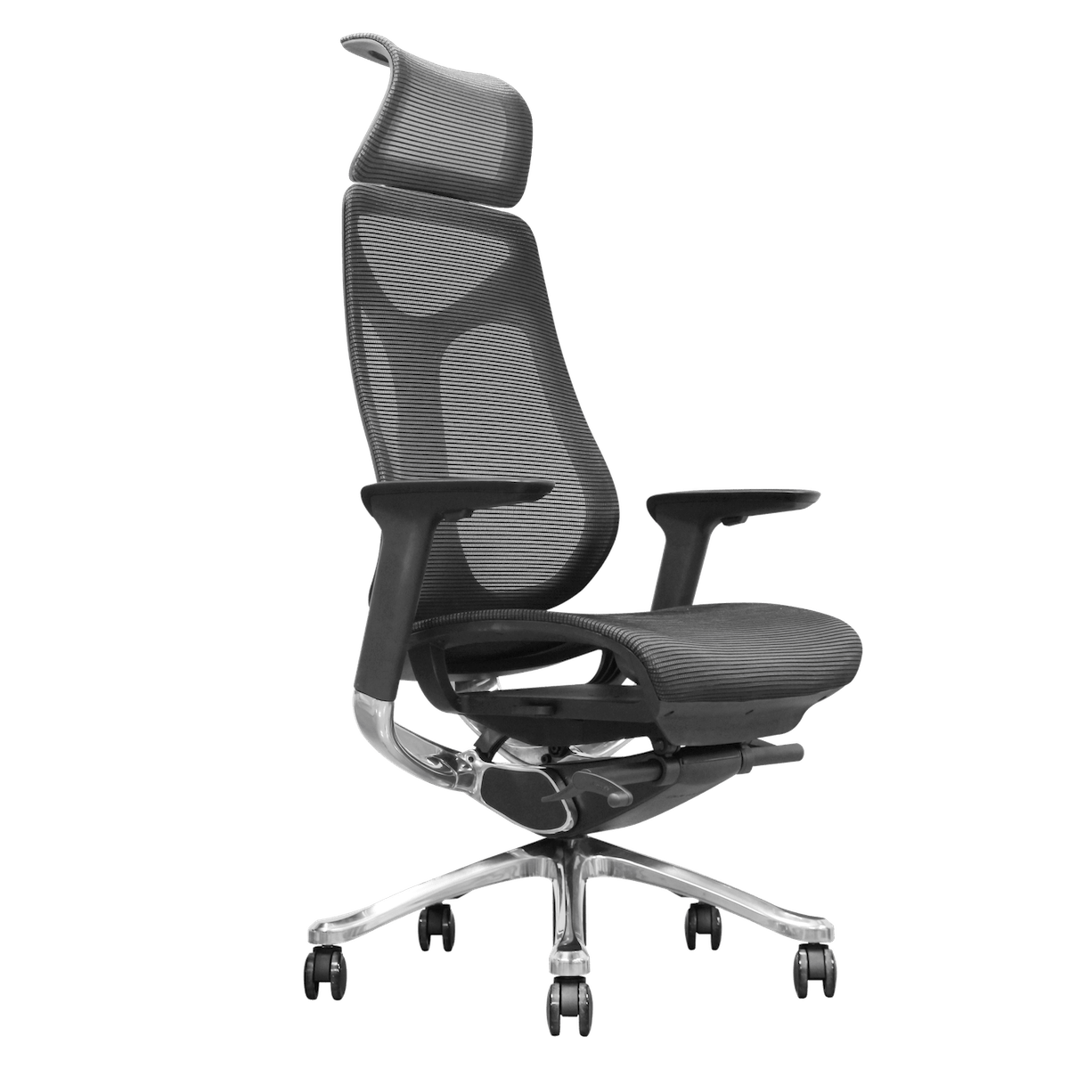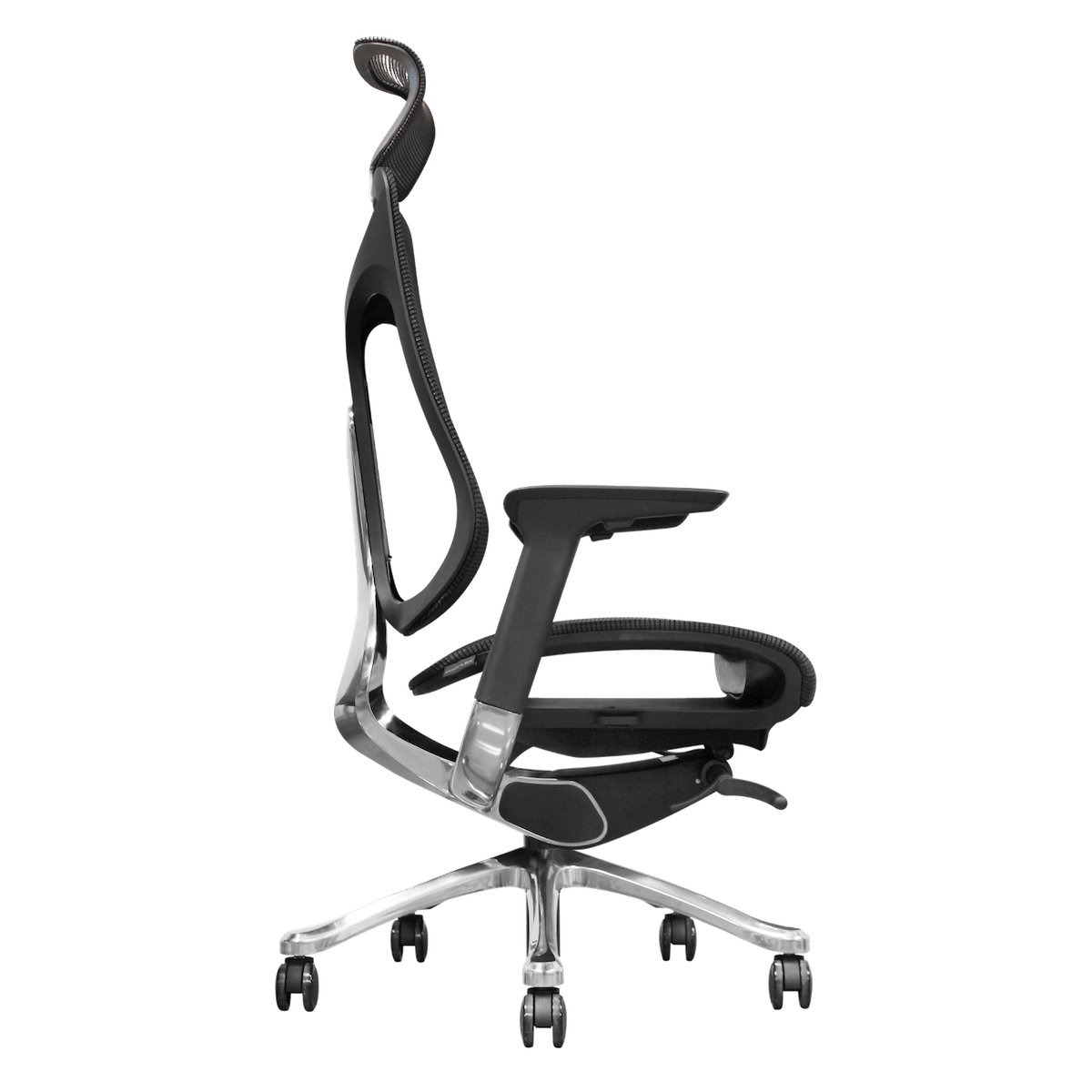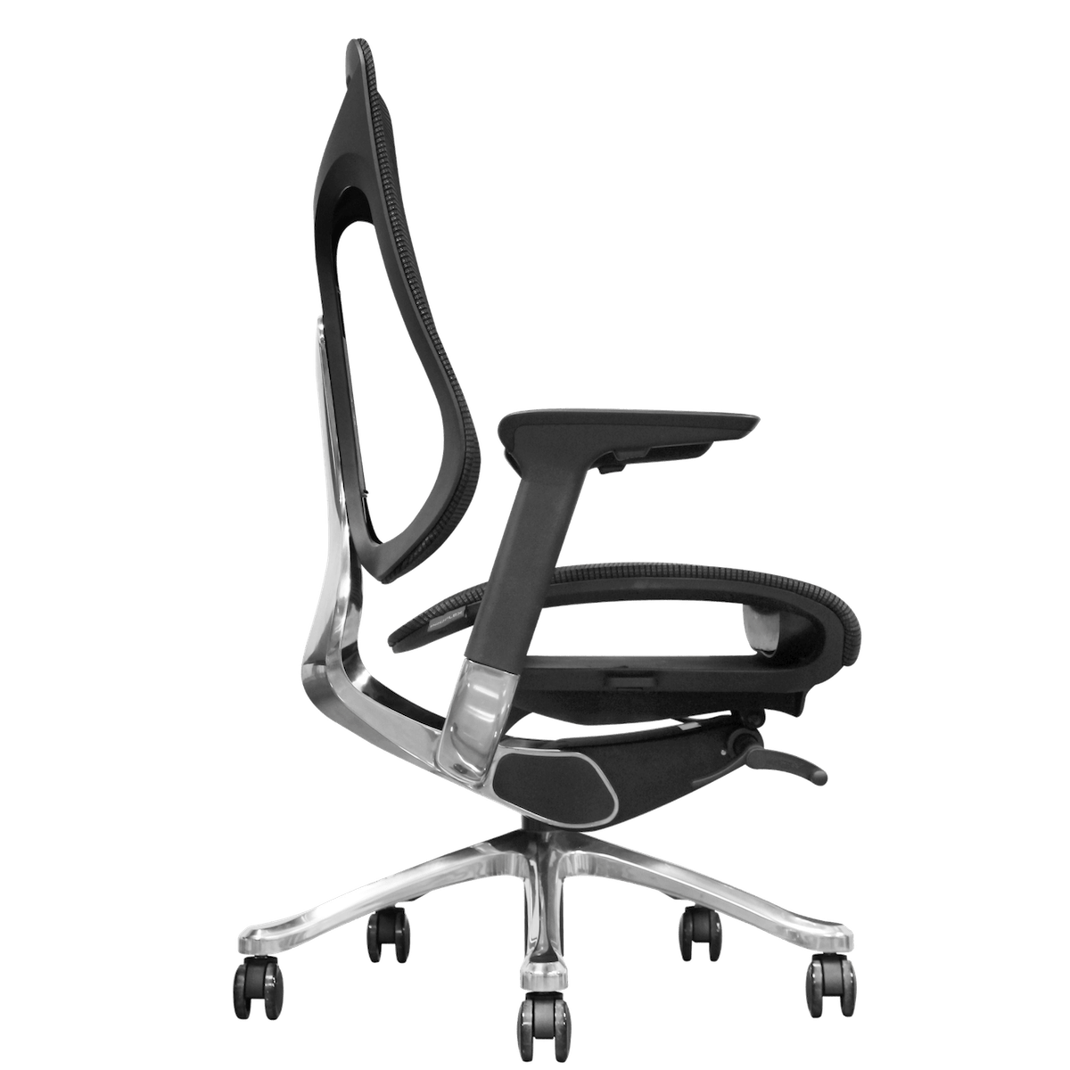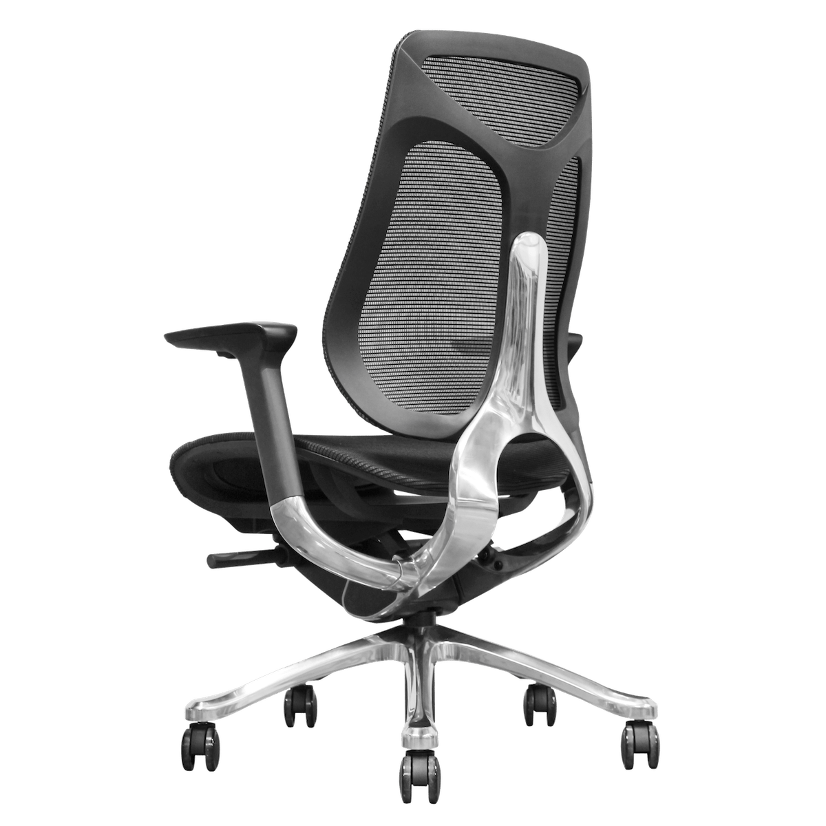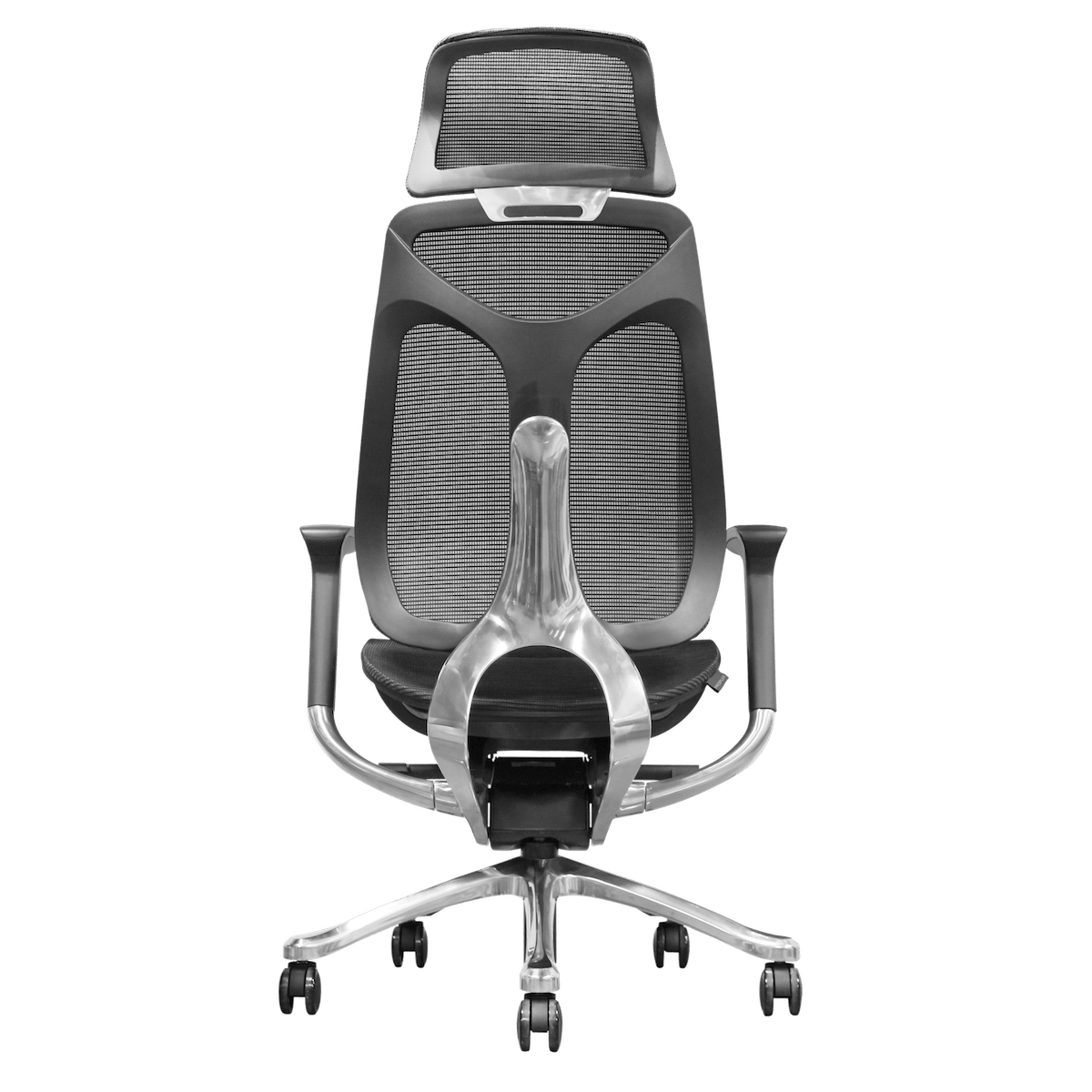 เก้าอี้พนักพิงสูง ที่นั่งผ้าตาข่ายสีดำ พนักพิงผ้าตาข่ายสีดำ เบาะนั่งสามารถเลื่อนเข้า-ออก ได้ตามสรีระของผู้นั่ง ด้านหลังเก้าอี้ระหว่างที่นั่งและพนักพิงผลิตจากอลูมิเนียมอัลลอยด์ เพื่อเพิ่มความแข็งแรงคงทน แขนปรับระดับได้ นั่งสบายด้วยเบาะที่หนานุ่ม